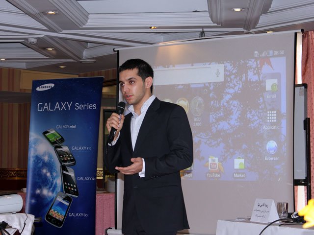 در ادامه این جلسه، رضا آقایی نیا، مدیر بازاریابی محصولات شرکت سامسونگ به معرفی چهار مدل جدید تازه وارد این شركت پرداخت. وی با بیان آنکه اندروید یک سیستم عامل موفق ارزیابی میشود، ادامه داد که سامسونگ برخلاف برخی از رقبا، گوشیهایش را تنها با نسخه جدید 2/2 به بازار عرضه میکند و برنامههای آنرا نیز بهطور کامل فارسیسازی کرده است.