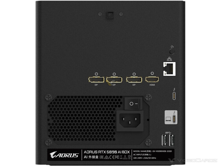 باید اشاره کرد نسخه AORUS AI BOX که توسط یک کارت گرافیک RTX 5090 دسکتاپ تغذیه می‌شود، بسیار کوچکتر از اکثر eGPUهایی است که مبتنی بر گرافیک‌های رده بالای RTX هستند. در واقع این محصول یک کارت گرافیک سفارشی است که به سیستم خنک‌کننده مایع Waterforce مجهز شده و از منبع تغذیه داخلی پشتیبانی می‌کند. علاوه بر آن، این محصول پورت‌های اضافی مانند Ethernet یا USB را ارائه خواهد داد. همچنین، این باکس از اتصال Thunderbolt 5 استفاده می‌کند که به طور نظری همان پهنای باند OCuLink را به ارمغان خواهد آورد. ناگفته نماند که بر اساس آزمایش‌های انجام شده، Thunderbolt 5 کندتر از OCuLink است.