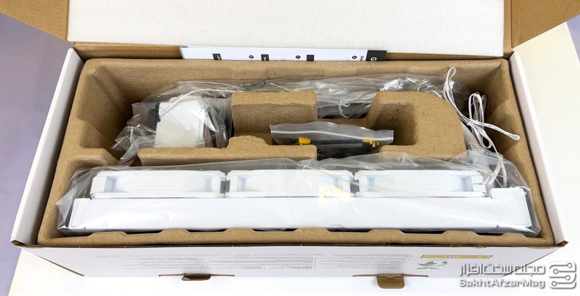 اجزای واترکولر بسیار مرتب درون جعبه قرار داده شده‌اند، فن‌ها از پیش نصب شده بر روی رادیاتور قرار گرفته و دفترچه راهنما با زبان ساده نحوه نصب را آموزش داده است.