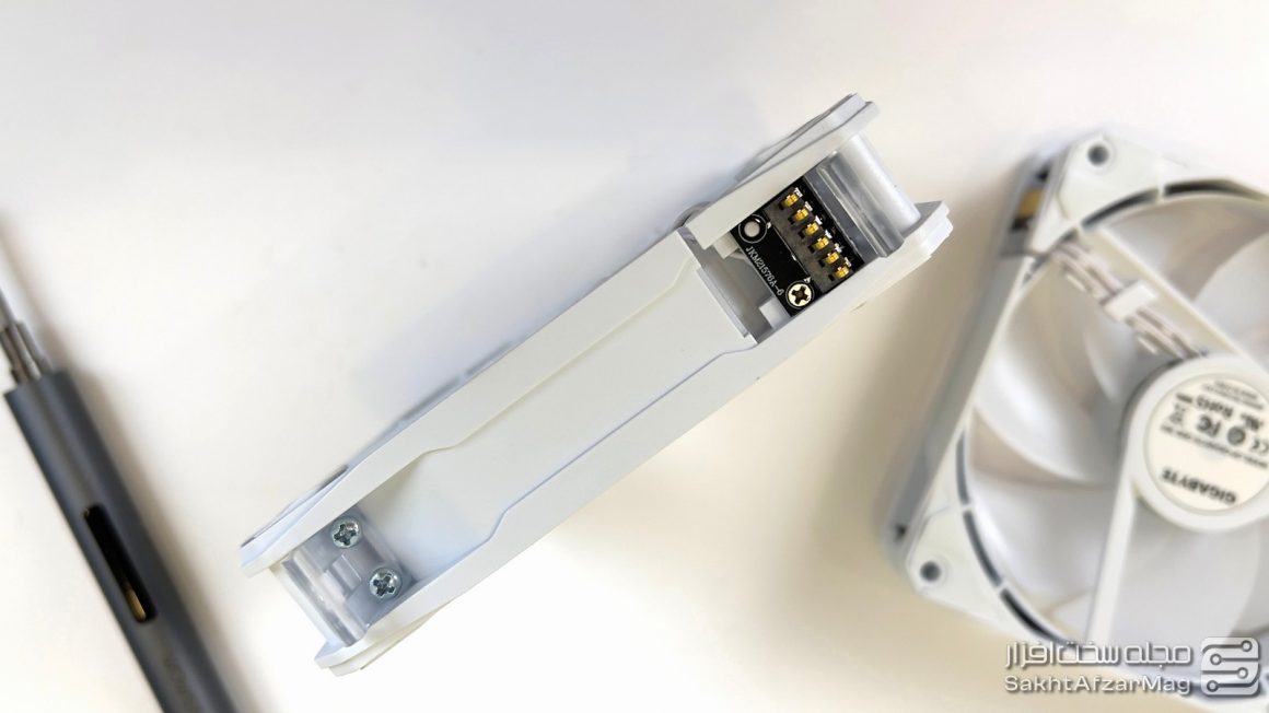 حاشیه فن‌ها مجهز به لاستیک ضدلغزش است تا هیچ لرزشی را به سیستم منتقل نکنند. یک زائده فلزی در کنار هر یک از فن‌ها اتصال PWM و نورپردازی را برقرار می‌کند.