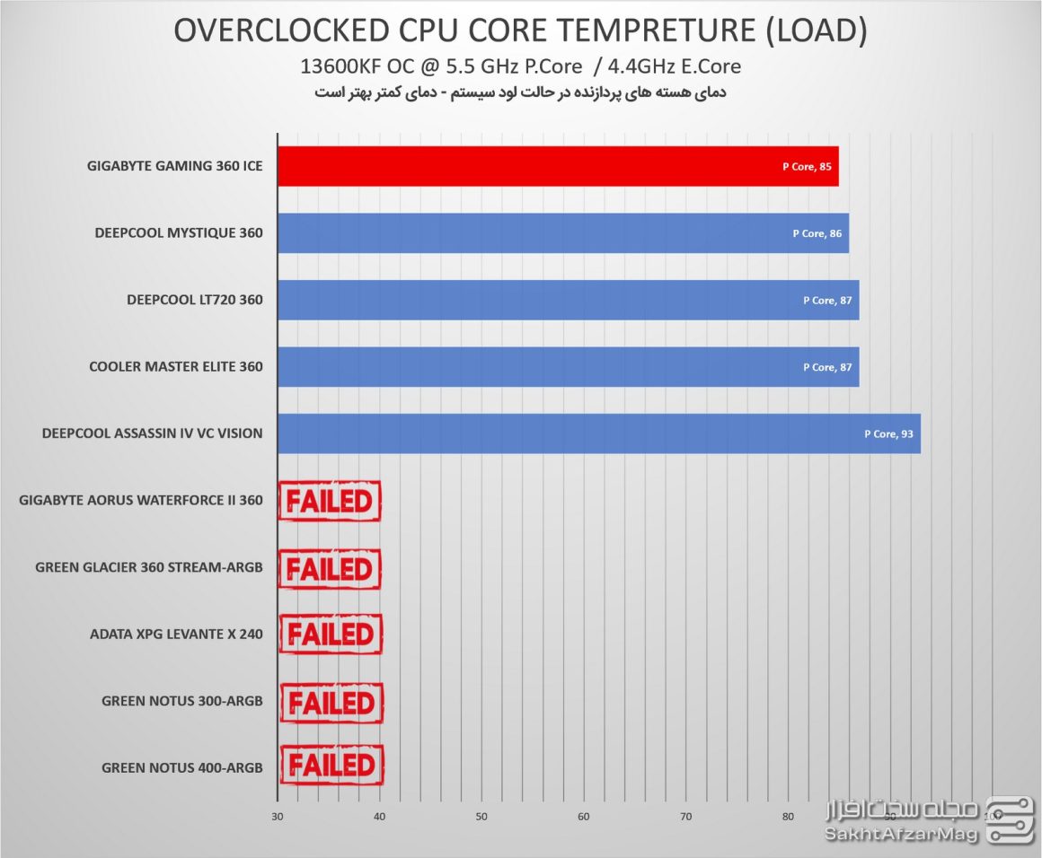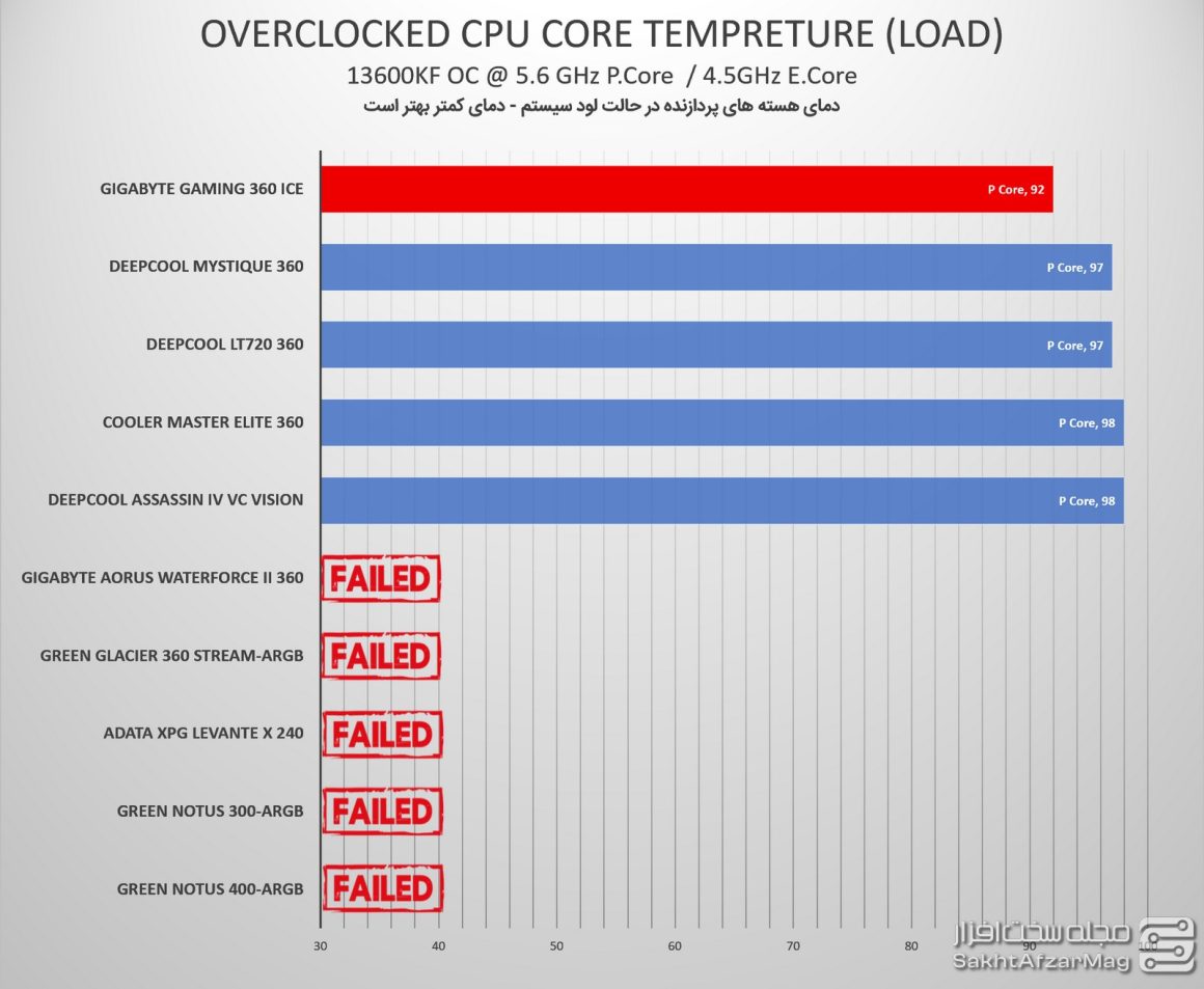 در سومین سطح از اورکلاک که آخرین سطح آن برای سیستم تست ما است، واترکولر GAMING 360 ICE گیگابایت توانست پردازنده را بدون Throttle کردن در حدود 92 درجه خنک کند، و همچنان جایگاه خودش را در صدر واترکولرهای مطرح بازار حفظ کند.