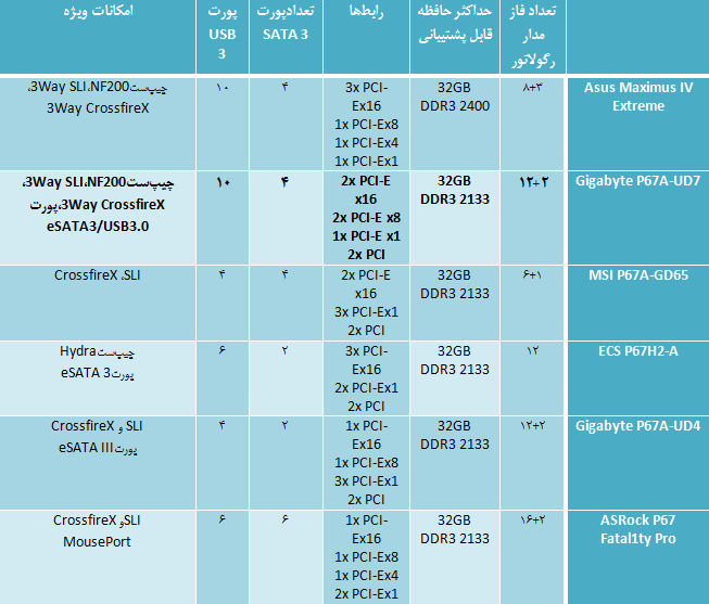 مانند مقاله مادربورد Asus Maximus IV Extreme ميتوانيد مشخصات فني اين مادربورد را در جدول ذير به صورت Bold ببينيد.