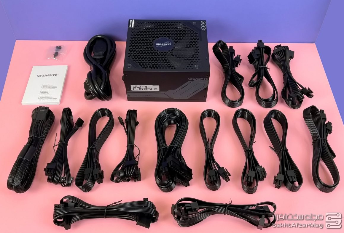 شرکت گیگابایت برای زیبایی هر چه بیشتر سیستم و همچنین راحتی مدیریت کابل‌کشی، تمام ‌کابل‌های این پاور را از نوع فلت و تمام مشکی رنگ استفاده کرده است. فاصله بین سوکت‌ها در هر کابل 15 سانتیمتر است و این موضوع به‌راحتی اسمبل کمک می‌کند و یکی از ویژگی‌های خوب کابل‌های این پاور محسوب می‌شود.