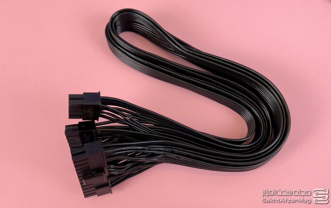 کابل برق 24 پین مادربرد از نوع فلت و تمام مشکی است.