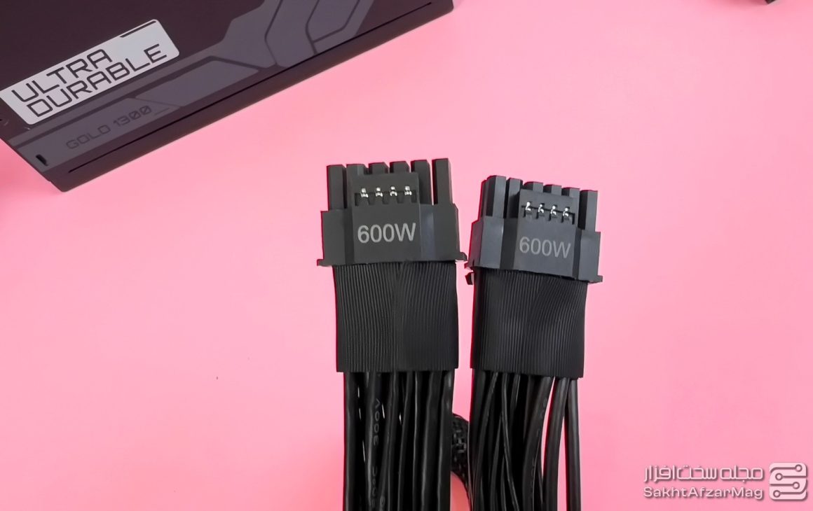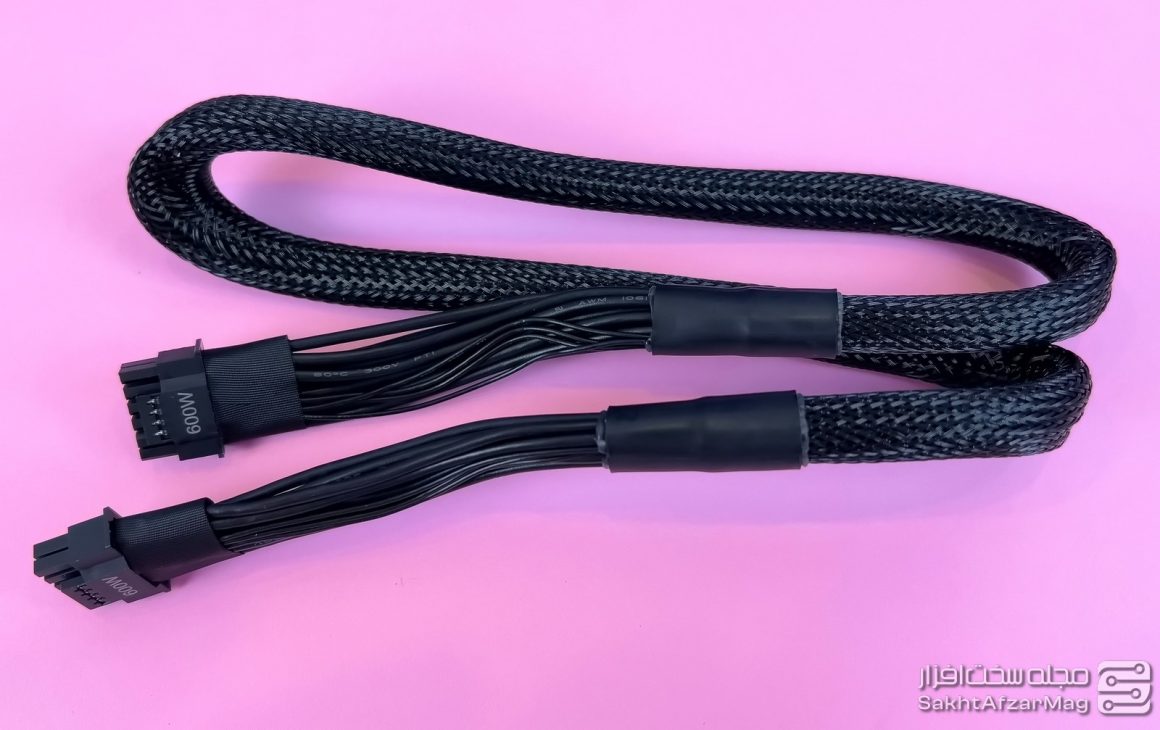 کابل برق 16 پین 12VHPWR همراه پاور از نوع 600W و اسلیو شده است.