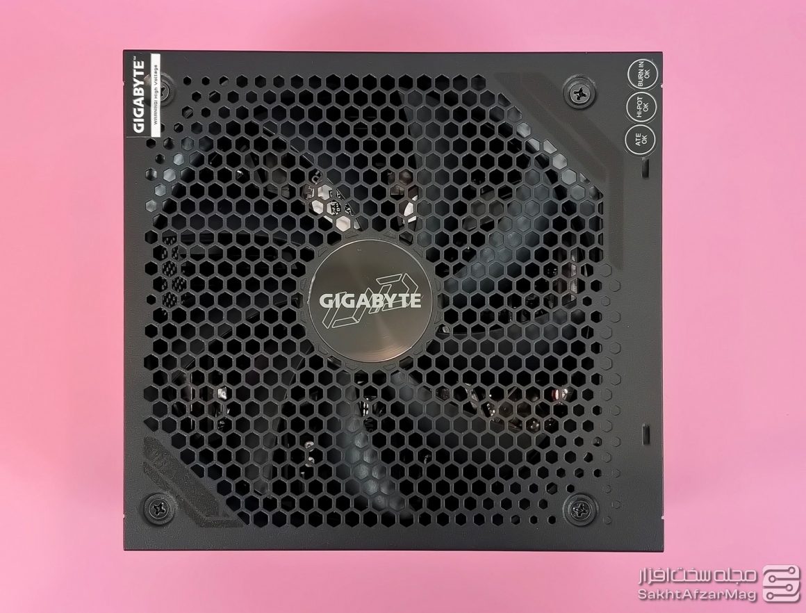 در سمت فن، بج فلزی گیگابایت در وسط شاسی قرار دارد.