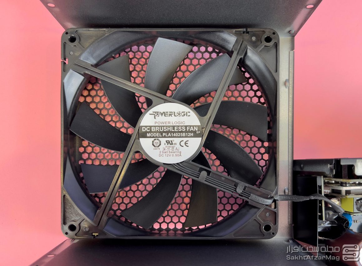 فن مورداستفاده در پاور، مدل Power Logic PLA14025B12H است که یک فن 14 سانتیمتری کلاس سروری است. این فن تا حدود 300 وات در حالت Fanless قرار دارد و پس از آن به صورت هوشمند بر اساس واتیج مصرفی، سرعت خود را تنظیم میکند.