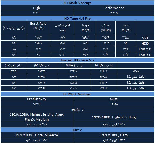 از آنجا که این مادربورد از 4-Way SLI پشتیبانی میکند، تصمیم گرفتیم چهار کارتگرافیک GTX 480 را روی آن نصب کنیم و در این حالت کارایی آن را محک بزنیم. جدول زیر، مشخصات فنی سیستم تست ما را نشان میدهد.