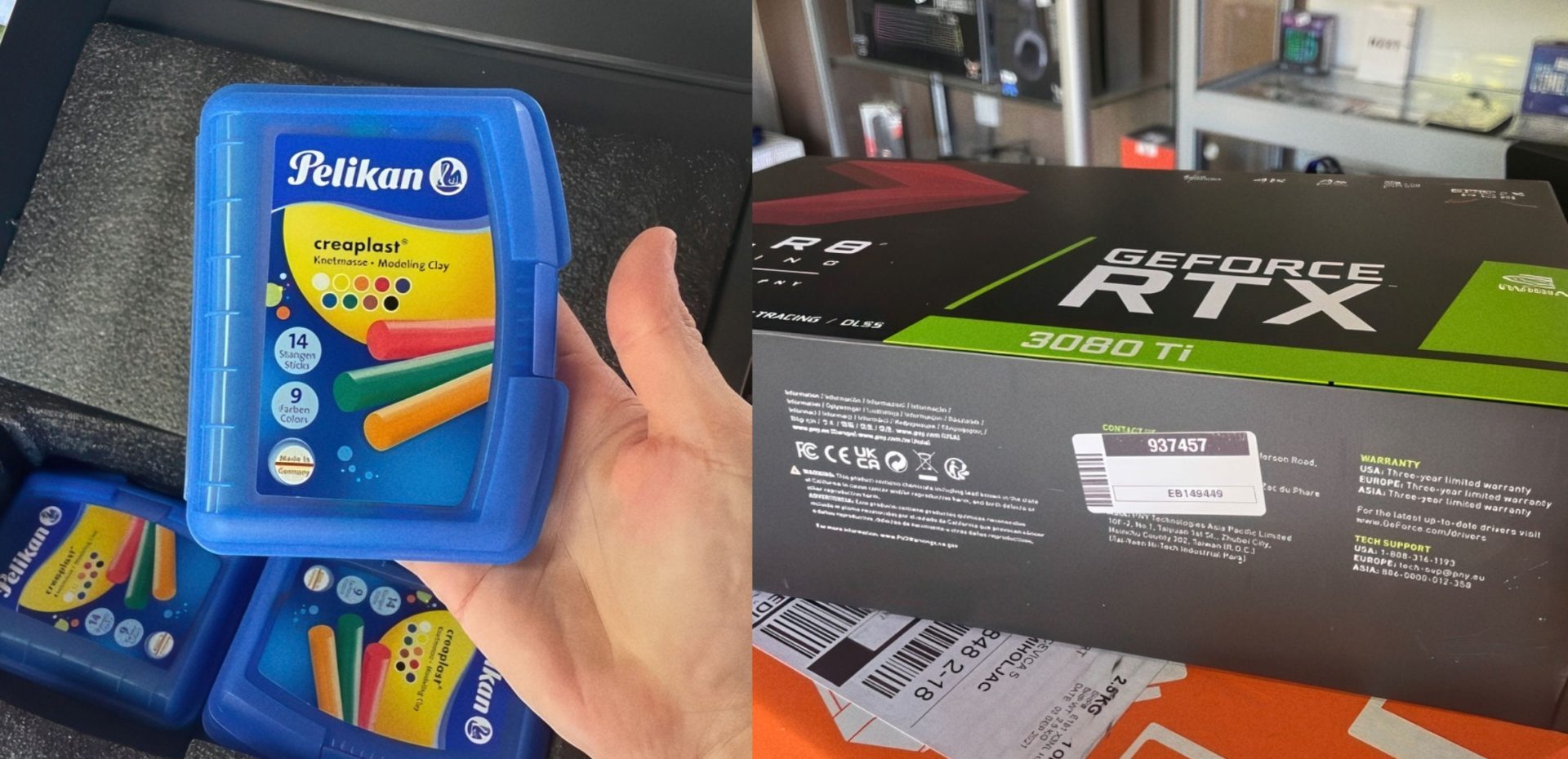 مارینو توضیح میدهد بسته هنگام تحویل ظاهری غیرعادی داشت؛ زیرا جعبه محصول با نایلون پیچیده شده بود. پس از درخواست برای ارائه مدرک، او تصاویر و اسناد خرید را ارسال کرد. به گفته این خواننده، داخل جعبه بهجای کارت گرافیک خمیر مدلسازی قرار داشت. مارینو احتمال میدهد بسته در مراحل قبلی زنجیره مرجوعی دستکاری شده باشد؛ بهطوری که مشتری قبلی جعبه را با محتوای اشتباه بازگردانده باشد.
