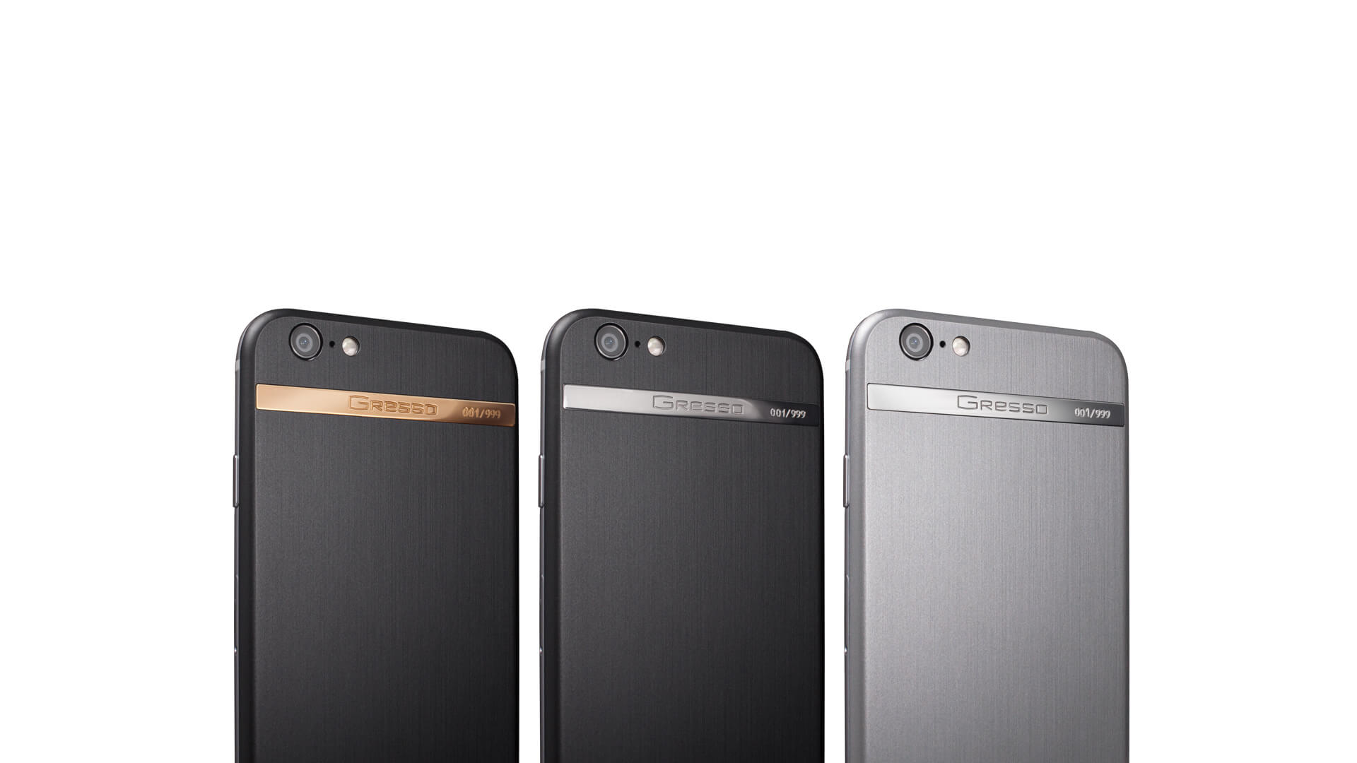 شرکت آمریکایی Gresso که برای گوشی های موبایل لوکس و زیبای خود شهرت خوبی کسب نموده، تصمیم به ورود به قلمروی اپل گرفته و ویرایشی از گوشی آیفون 6 را با فلزات گران قیمت و پرداخت ویژه خود ترکیب نموده تا محصولی به قول خود “لوکس و مینیمالیستی” ارائه نماید. آیفون 6 Gresso همان مشخصات سخت افزاری شناخته شده را داشته و سبک و سیاق طراحی آن نیز همان الگوی گوشی اندرویدی Regal این شرکت را دنبال می کند. مواد به کار رفته در ساخت هم یکسان بوده و از طلای زرد و سفید 18 عیار همراه با تیتانیوم استفاده شده است. البته پرداخت آیفون 6 تنها شامل نیمه پشتی دستگاه شده و دکمه ها به علاوه شیشه محافظ بدون تغییر باقی مانده اند.