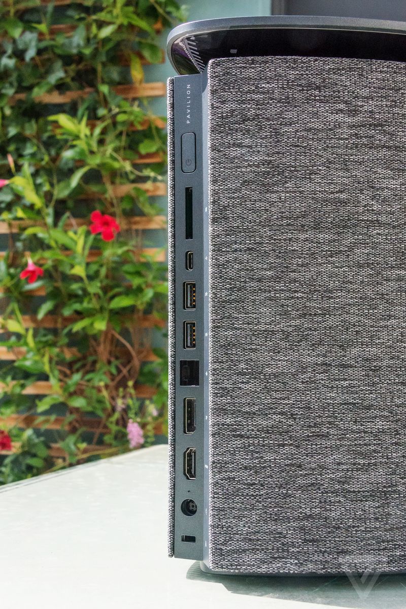 مینی کامپیوتر جدید HP در نگاه اول به مانند یک اسپیکر بیسیم است.حتی می توان آن را در نزدیکی مبلمان منزل قرار داده و به سرعت با طراحی منزل ست کرد.یک روکش پارچه ای با جنسی شبیه به پارچه هایی که در مبلمان مورد استفاده قرار می گیرد،اطراف آن را پوشانده است.در قسمت جلوی استوانه 3 ضلعی،یک پورت 3.5 میلی متری هدفون و یک پورت USB قرار دارد.در قسمت پشت نیز HP پورت های HDMI،کارت خوان و USB-C را قرار داده است.