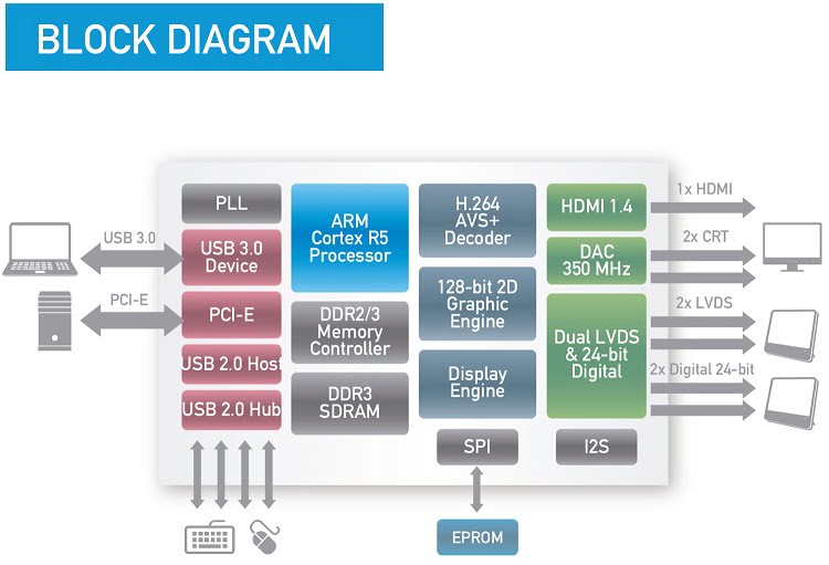 256 مگابایت حافظه داخلی نوع DDR3 برای آن در نظر گرفته شده و کنترلر آن می تواند در صورت لزوم تا 1 گیگابایت حافظه را شیر نماید. جالب است که کنترلر Silicon Motion SM768 دارای هاب USB بوده و حتی افزون بر مسیر PCI-E با USB 3.0 نیز سازگار است. این مشخصات در “بلوک دیاگرام” آن قابل مشاهده است.