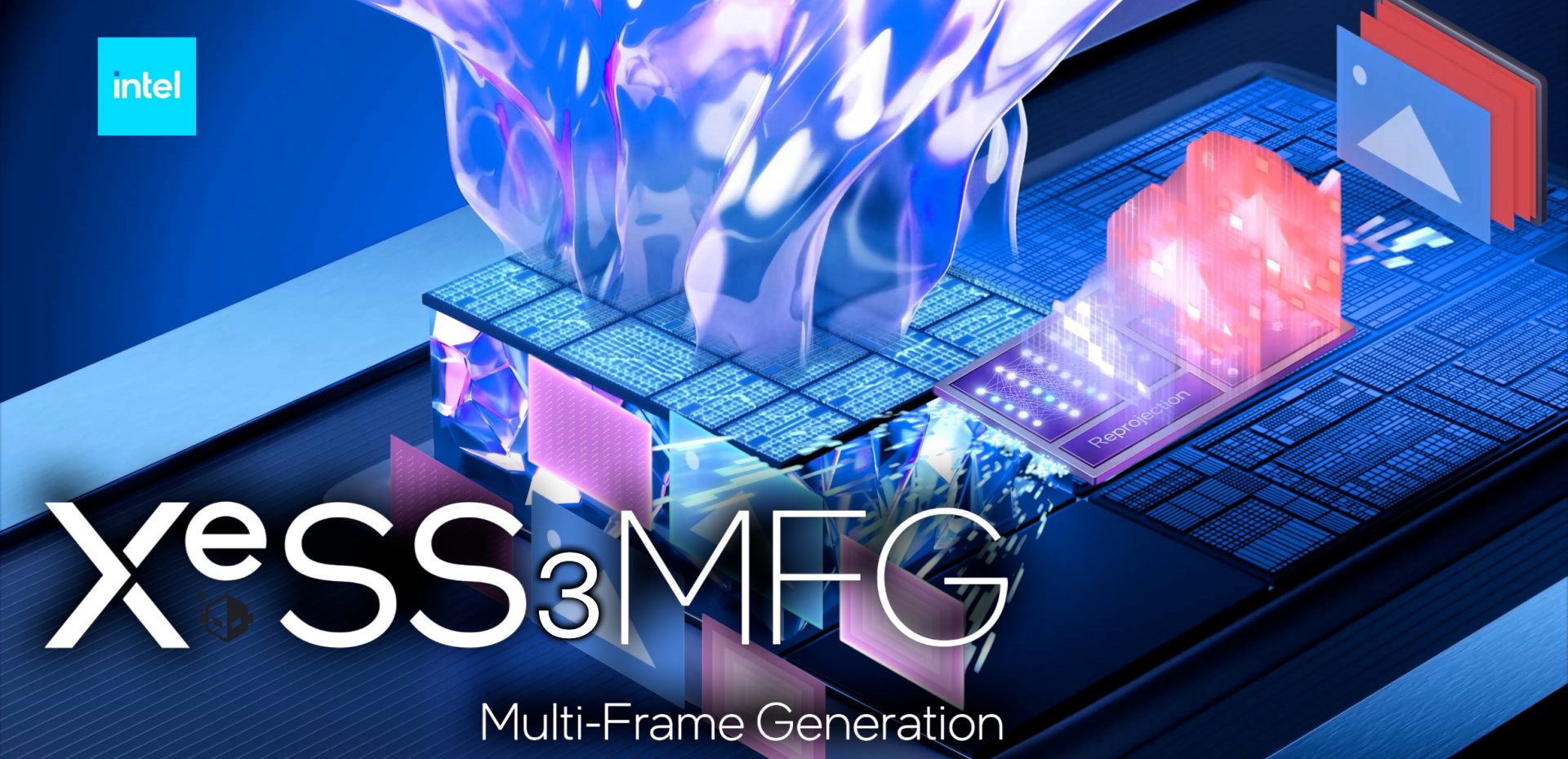 اینتل امروز فناوری ارتقاء مقیاس XeSS 3 را با پشتیبانی از تولید چندفریمی (MFG) معرفی کرد. اینتل پس از انویدیا دومین شرکت گرافیکی است که این فناوری را برای پردازندههای گرافیکی خود ارائه میدهد. انویدیا پیشتر این فناوری را عرضه کرده و در چندین بازی پیادهسازی شده است. فناوری MFG اینتل با استفاده از دو فریم رندرشده قبلی، شبکه جریان نوری را با بردارهای حرکتی و بافرهای عمق تولید میکند و سپس تا 4 فریم بین این دو فریم را ایجاد مینماید.