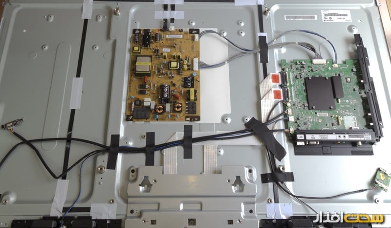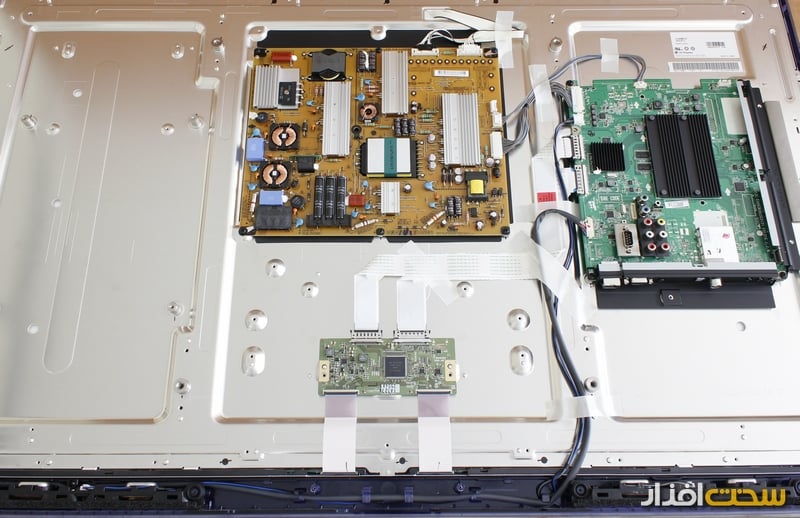 مدار اول که درست وسط دستگاه قرار دارد، منبعتغذيه تلويزيون است که وظيفه تغذيه بردها و پنل را بر عهده دارد. اندازه مدار تغذيه در نسل جديد در مقايسه با قبل کوچکتر شده که اين موضوع نشاندهنده بهينه شدن توان مصرفي و همچنين طراحي بهتر منبعتغذيه است. درست در سمت راست اين برد، بردي که مدار کنترلکننده پورتها و پردازنده اصلي دستگاه روي آن قرار دارد، ديدهميشود. روي پردازنده اصلي، يک خنککننده آلومينيومي نازک قرار دارد که به وسيله چند گيره روي برد محکم شدهاست.