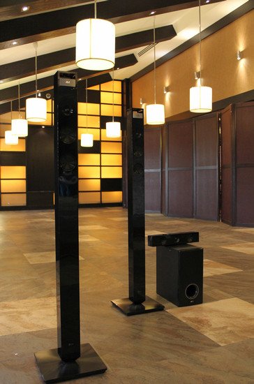برای بررسی کیفیت صدا، توسط مسئولان LG نسخه Blu-ray فیلم 2012 در پخش کننده قرار گرفت و بخش اول فیلم که شامل تخریب شهر است پخش شد و هر چند ثانیه، صدای سه بعدی روشن و خاموش می شد تا تفاوت این دو حالت به خوبی حس شود. پس از آن نیز یک قطعه موسیقی (با صدای 5.1کاناله) پخش گردید. البته ما به این دو مورد اکتفا نکردیم و پس از تمام شدن مراسم، قسمت آخر فیلم Harry Potter با کیفیت Full HD و صدای 5.1 کاناله را نیز روی این سیستم تست کردیم (جای همه شما خالی!). در تجربه موسیقی، فعال سازی قابلیت سه بعدی می توانست به خوبی حس حضور در یک سالن را القا کند و کیفیت صدا نیز در سطح بالایی قرار دارد. اما در فیلم ها، گاهی اوقات فعال بودن صدای سه بعدی هیجان انگیز بوده و گاهی اوقات (مخصوصاً در قسمت هایی که سر و صدا زیاد و چندین صدا در حال پخش است) ممکن است حس مخلوط شدن صدا را تجربه کنید (این تجربه شخصی من بود و برخی از حضار از صدای سه بعدی کاملاً رضایت داشتند). یکی دیگر از مواردی که برایمان عجیب بود، کاهش حجم صدا در زمان غیرفعال بودن حالت سه بعدی، و افزایش بلندی صدا در زمان فعال شدن بود در حالی که انتظار داشتم حجم صدا تغییر نکرده و حس سه بعدی بودن صدا را با فعال و غیرفعال کردن حالت 3D تجربه کنم. با تمام این احوال، قیمت زیر یک میلیون تومانی این مجموعه باعث می شود تا برای خرید این مجموعه حسابی وسوسه شوید و در خانه خودتان یک استودیو صوتی کوچک راه اندازی کنید.