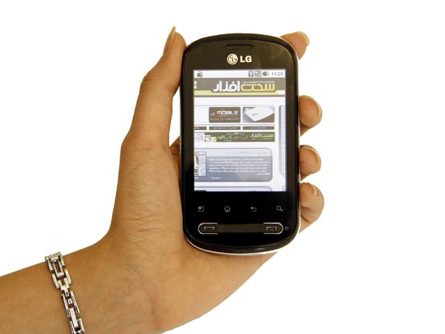 باید اعتراف کنیم که وقتی گوشی را در دست میگیرید، خیلی نمیتوان حدس زد که با یک نمونه اندرویدی سر و کار دارید. البته بیشتر از هرچیزی جثه کوچک و طراحی متفاوت سبب میشود که چنین چیزی در ذهن شما تداعی شود وگرنه Optimus Me ظاهر بیکلاسی ندارد! ابعاد 12/5×53×108 میلیمتری به خوبی در دستان شما قرار میگیرد و با آنکه 130 گرم وزن برای چنین ابعادی کمی زیاد است ولی سبب آزار کاربر نمیشود.البته از آنجاییکه الجی قصد تولید یک گوشی اقتصادی را داشته، تا جاییکه امکان آن بوده از پلاستیک در ساختار گوشی بهره گرفته است و حتی برخلاف Optimus One که یک نوار با طرح فلز (و نه خود فلز!) دور آن کشیده بود، اینبار حتی از این ظاهر فریبنده (شاید هم فریب دهنده!) بهرهای نبرده است. البته باید اعتراف کنیم که ساختار بدنه گوشی بسیار محکم است و تا وقتی که سفت آن را در دستان خود بگیرید، هیچ اتفاقی برایش نمیافتد! نمای جلوی گوشی متشکل از چهار کلید لمسی و دو کلید فیزیکی است که وظیفه قطع و وصل کردن تماس را برعهده دارند که توسط یک نوار پلاستیکی به هم متصل شدهاند (الجی تصور کرده با اینکارش خیلی گوشی قشنگ میشود!) کلید قطع تماس وظیفه پاور را هم برعهده گرفته و چهار کلید لمسی، بهخوبی بیانگر این موضوع است که با یک گوشی هوشمند اندرویدی سر و کار دارید.