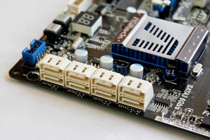 در سمت راست چيپست هشت پورت SATA3 وجود دارد كه بوسيله چيپست A75 (كد رمز Hudson D3) مديريت ميشود.