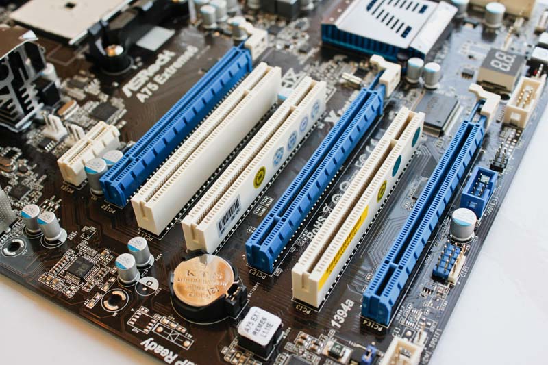 A75-Extreme6 مجهز به سه رابط PCI، يك رابط PCI-E x1 و سه رابط PCI-E x16 است كه دو رابط PCI-E شماره دو و سه در صورت استفاده به صورت همزمان در حالت x8 فعاليت ميكنند. باتري بايوس هم درست در مقابل رابط PCI-E شماره دو قرار دارد.