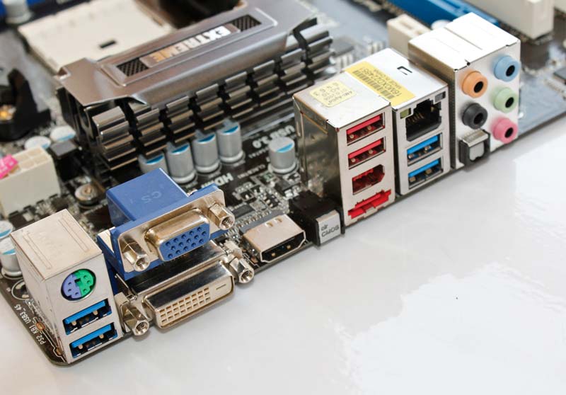 در پنل پشتي مادربورد علاوه بر 4 پورت USB3 ( بوسيله چيپست A75 مديريت ميشود)، دو پورت USB2، يك پورت IEEE139، پورت eSATA نسخه 3، پورت شبكه گيگابيتي، كانكتورهاي 3.5 ميليمتري صدا و دكمه ريست بايوس، سه خروجي HDMI نسخه D-Sub ،1.4a و DVI هم ديده ميشود كه امكان استفاده از پردازنده گرافيكي مجتمع HD6000 موجود در APU را به شما ميدهد.