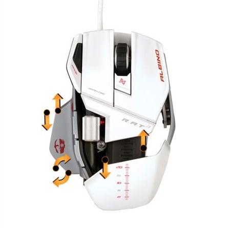 مهمترین ویژگی این ماوس، قابليت انطباق‌پذیری بالای آن برای دست است. به طوری که می‌توان ابعاد ماوس را بزرگتر کرد و با محل قرارگیری انگشت شست را حرکت داد و چرخاند تا در نهایت بیشترین میزان تسلط روی ماوس به وجود آید. پنج دکمه قابل برنامه‌ریزی برای این ماوس در نظر گرفته شده و در ضمن می‌توان چهار پروفایل مختلف برای دقت‌های مختلف نیز برای این ماوس تعریف کرد. همچنین مانند هر ماوس مخصوص بازی دیگری، وزن R.A.T Albino نیز قابل تغییر است.