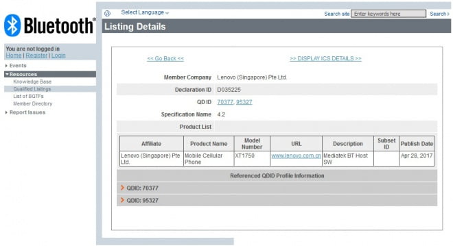 این محصول با شماره مدل XT1750 آشکار شده و توانست تاییدیه ای از سوی Bluetooth SIG دریافت کند. براساس اسناد، Moto C موتورولا به بلوتوث 4.2 مجهز است و این یعنی یک تلفن هوشمند کارآمد با مشخصات مناسب و نه بسیار جدید.