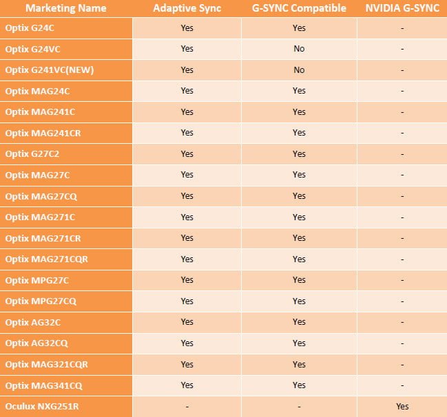 یکی از ویژگی های این اتفاق، خرید مانیتورهای ارزان تر از مدل های دارای تراشه G-Sync بود. شرکت MSI از چند سال گذشته، پا به حوزه تولید نمایشگر نهاده و عمده فعالیت آن در حوزه مانیتورهای مخصوص بازی است. این شرکت به تازگی لیستی از مانیتورهای خود را منتشر کرده است که با برخورداری از Adaptive Sync، می توانند از فناوری G-Sync پشتیبانی نمایند.