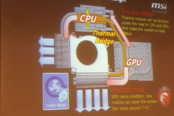 Cooler Boost 2 به طراحی جدید خنک کننده در نوت بوک های مخصوص بازی msi اشاره دارد که با اضافه کردن یک لوله انتقال حرارت بین خنک کننده پردازنده مرکزی و پردازنده گرافیکی، گرما را بین این دو خنک کننده تقسیم کرده و باعث بهینه شدن کارکرد سیستم خنک کننده میشود. به گفته مسئولان msi، استفاده از این روش حدود 7 تا 8 درجه سانتیگراد دمای قابل حس روی بدنه نوت بوک را کاهش میدهد. ویژگی Super RAID 2 نیز با استفاده از ویژگی RAID و درایو های SSD، سرعت انتقال اطلاعات را به حداکثر 1500 مگابایت در ثانیه خواهد رساند. بهینه سازی کیفیت صدا نسبت به نسل قبل، استفاده از آمپلی فایر هدفون برای بهبود خروجی صدای هدفون متصل به نوت بوک، استفاده از بلندگوهای Dynaudio روی نوت بوک و استاندارد های صوتی از جمله THX موارد دیگری هستند که در سری بعدی نوت بوک های مخصوص بازی msi خواهیم دید.