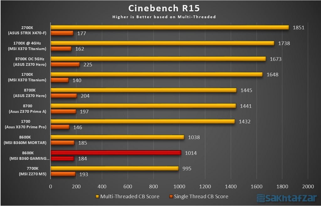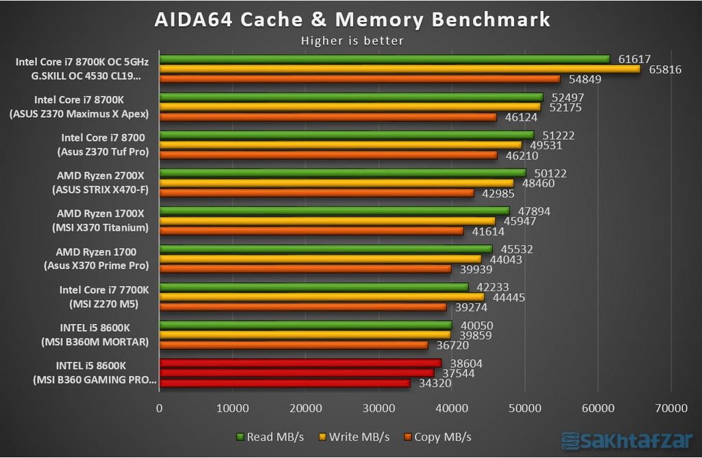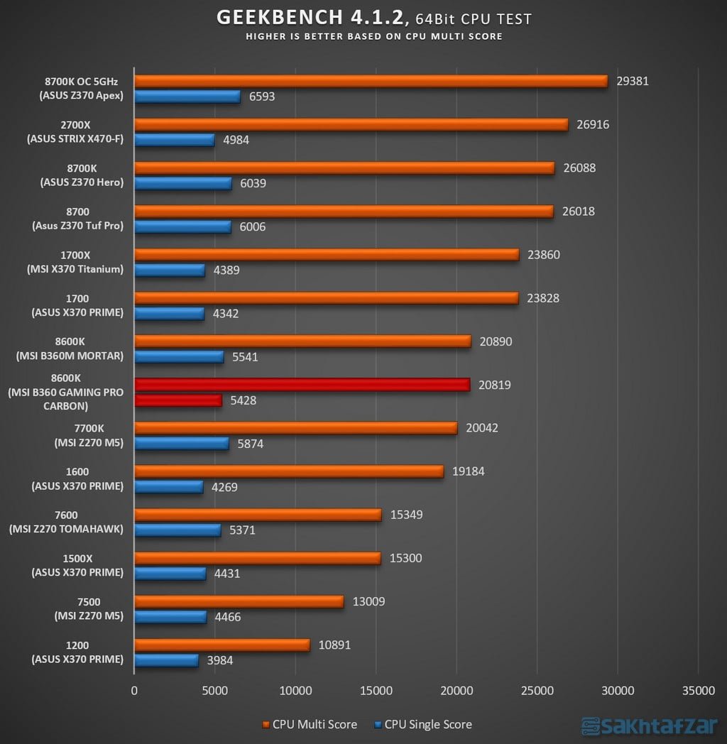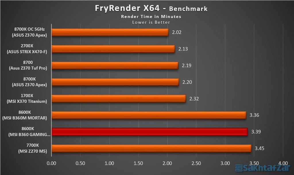 در بررسی سیستم، با هیچ مشکلی مواجه نشدیم و سیستم مثل ساعت همه ی تست ها را پاس کرد. البته نتایج بدست آمده حاکی از برتری MSI B360 MORTAR بود، اما فاصله به هیچ وجه زیاد نبوده و در برخی تست ها پابه پای رقیب خود عملکرد قابل قبولی داشته است. با توجه به پشتیبانی چیپ B360 از حداکثر فرکانس 2666 رم، مجبور به کاهش فرکانس رمهای خود از 3600 به 2666 شده ایم که این امر باعث کاهش امتیازات رم می شود و حتی در تست های رندر هم تاثیر منفی بر روی امتیاز پردازنده خواهد داشت. منطقا برای استفاده از حداکثر توانایی پردازنده ی 8600K می بایستی از مادربرد های Z370 استفاده کرد. به سراغ تست ها می رویم: