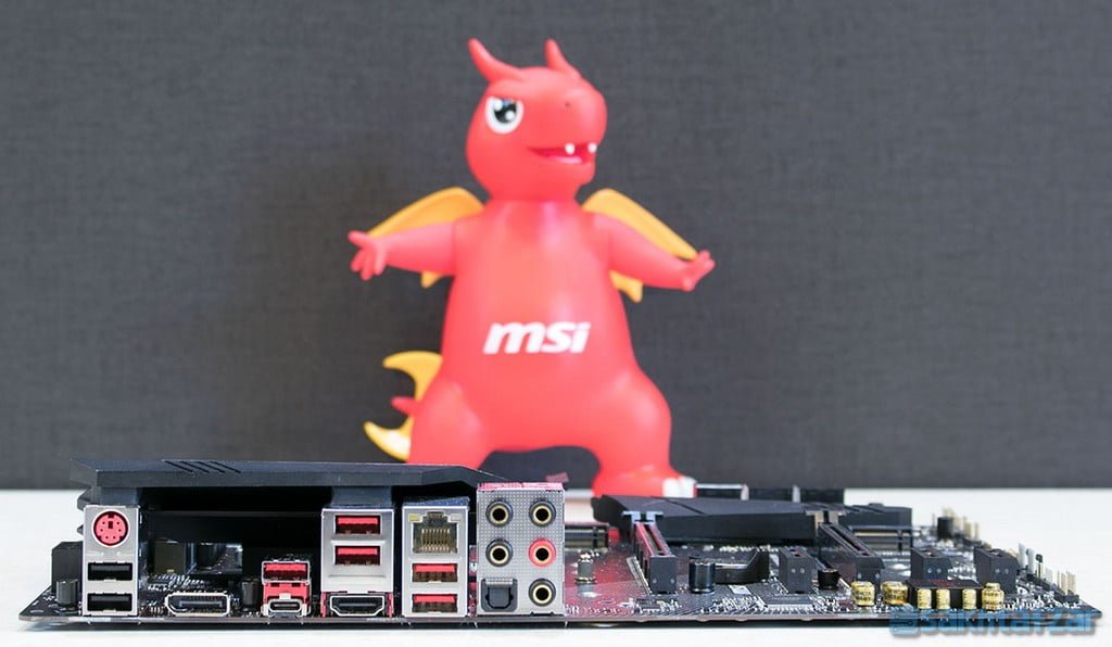 در I/O پنل مادربرد خروجی های 7.1 کاناله و Optical صدا قرار دارد که MSI بر روی آنها از روکش طلا بهره برده است. همچنین یک درگاه Lan متصل به چیپ I219-V اینتل به همراه دو درگاه USB 3.1 Gen.2 از نوع Type-A و Type-B، خروجی های تصویر HDMI و DP همچنین دو عدد USB 2.0 و یک عدد درگاه PS/2 نیز حضور دارند.