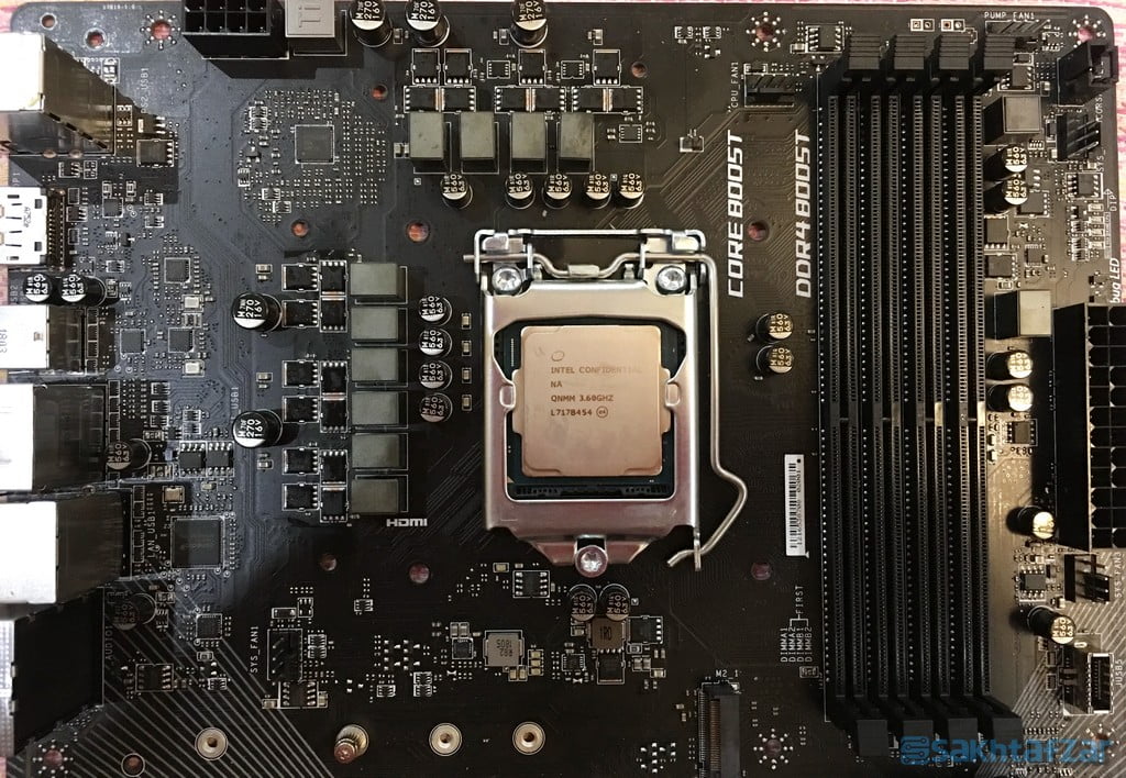از ویژگی های این پردازنده می توان به معماری ساخت 14++ نانومتری، 6 هسته پردازشی، حدکثر فرکانس کاری 4.3 گیگاهرتز، حداکثر توان مصرفی 95 وات و مقدار 9 مگابایت کش Level3 اشاره کرد. این پردازنده توسط دفتر محترم ام اس آی برای تست این مادربرد در اختیار سیستم تست قرار داده شده است.