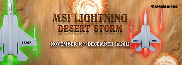 همچنین msi یک مسابقه دیگر نیز در نظر گرفته که به کارت های گرافیک Lightning این شرکت مربوط شده و شامل دو بازی میشود. این دو بازی msi Lightning Picture Matching و msi Lightning Desert Storm Battlefield نام داشته و برندگان این دو بازی میتوانند برنده یکی از کارت های گرافیک msi N680GTX Lightning یا msi R7970 Lightning باشند. از طریق لینک https://event.targets.com.tw/msi/msi-Lightning/en میتوانید به این مسابقه دسترسی داشته و در آن شرکت کنید.