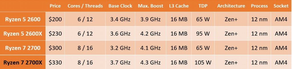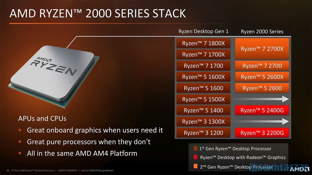 طبق چارت منتشر شده از طرف AMD، در حال حاضر مجموع 4 پردازنده Ryzen 2 وارد بازار خواهند شد که فعلا پرچمدار آنها Ryzen 7 2700X است.