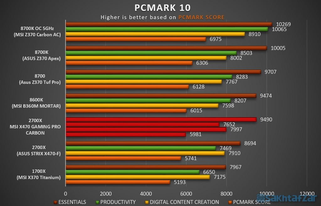 تست PCMARK 10 که یکی از جامع ترین و جدید ترین تست های شرکت فنلاندی Future Mark است، شامل بررسی و سنجش چهار بخش، عملکرد پردازشی پایه ای، اداری، رندرینگ و تبدیل های ویدیویی می شود. به نوعی تست ترکیبی از عملکرد کلی سیستم را مقایسه می کند. مادربرد های MSI به صورت سنتی بهترین عملکرد را در این بنچ مارک از خود نشان می دهند.