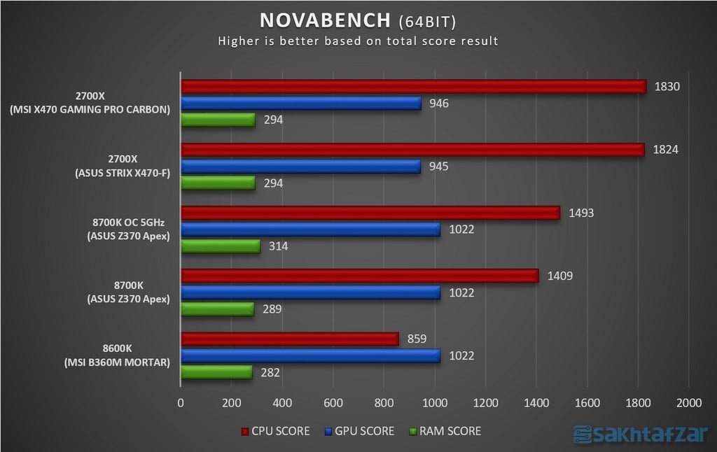 تست Nova bench یک تست ترکیبی است و نتیجه ی آن از جمع چهار امتیاز پردازنده، رم، گرافیک، و درایو ذخیره سازی است. با توجه به اینکه ما در طول سال گذشته از درایو های ذخیره سازی متنوعی استفاده کردیم از ذکر امتیاز درایو ذخیره سازی عبور کرده به نمایش سه امتیاز کلی پردازنده، رم، و گرافیک بسنده می کنیم.