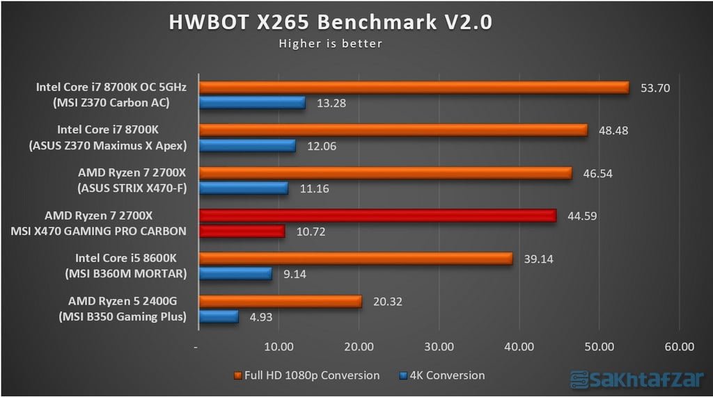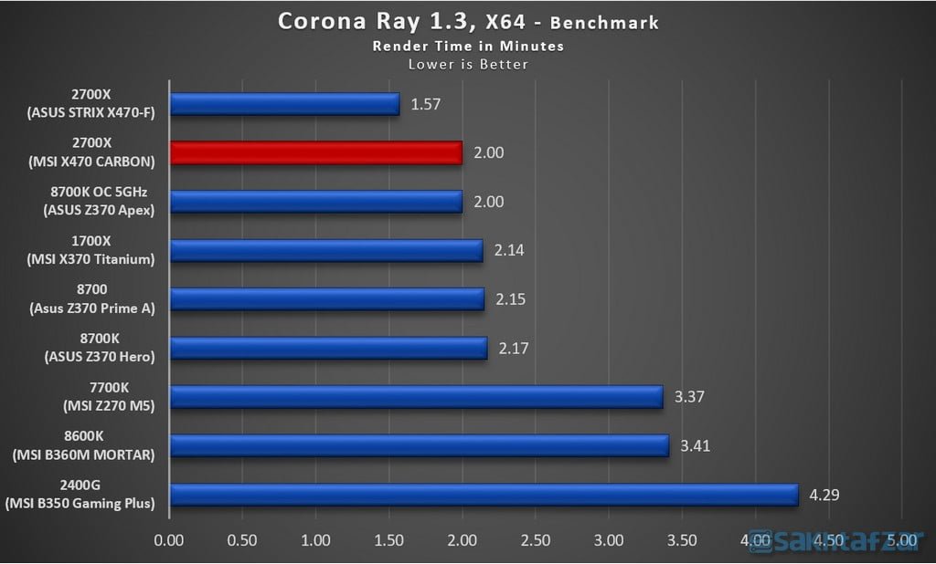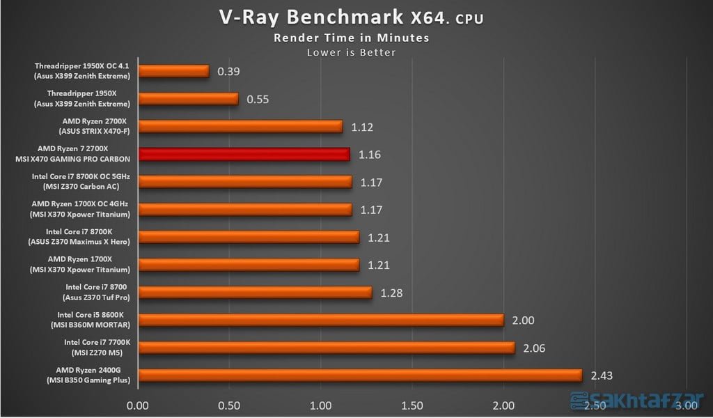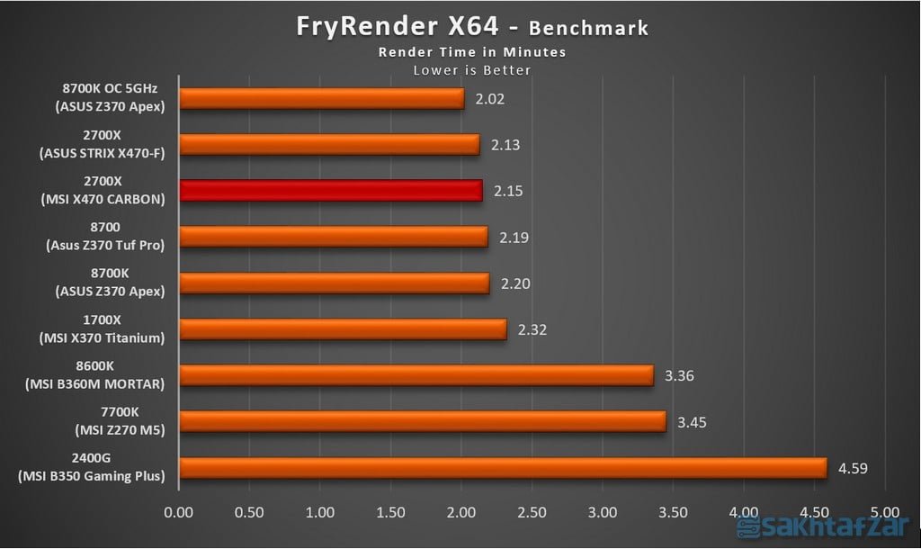در بحث رندرینگ و تبدیل های ویدیویی، عملکرد MSI X470 GAMING PRO CARBON قابل قبول است. و بازهم به همان نکته قبلی باید اشاره کرد که XFR2 به صورت هوشمند حداکثر قدرت پردازنده را در شرایط مختلف تنظیم می کند. ممکن است با تغییر دمایی، و یا خنک شدن دمای اتاق، قدرت پردازنده افزایش بیشتری یابد.