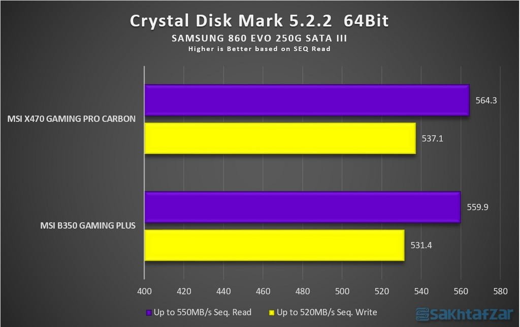 مدتی بود که از تست های درایوهای ذخیره سازی متصل به SATA عبور کردیم، خوشبختانه اخیرا درایو Samsung 860 Evo 250 به سیستم تست اضافه گردیده است. تست های آن کم کم کامل تر و جدول مربوطه در آینده پر بارتر خواهد شد. هم تست SATA و هم تست درایو M.2 برای این مادربرد قرار داده شده است و در مجموع امتیازات بسیار خوب در این بخش ارزیابی می شود.