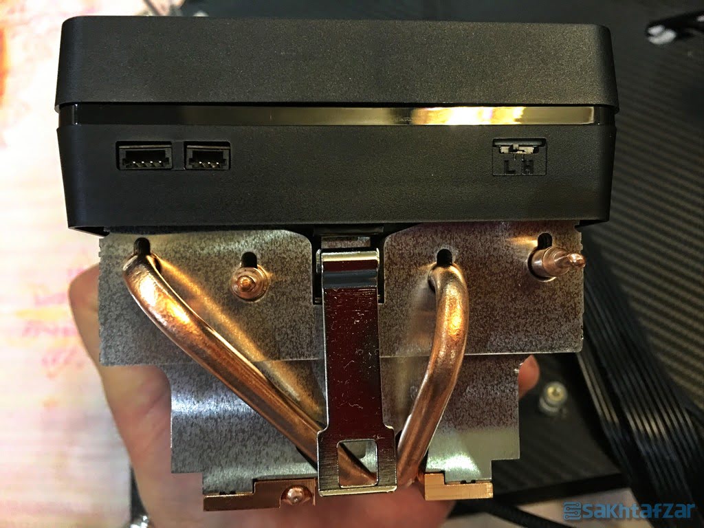 در تصویر فوق، کلید سمت راست برای تنظیم پروفایل گردش فن و دو سوکت سمت چپ برای اتصال RGB و فن روی مادربرد است.