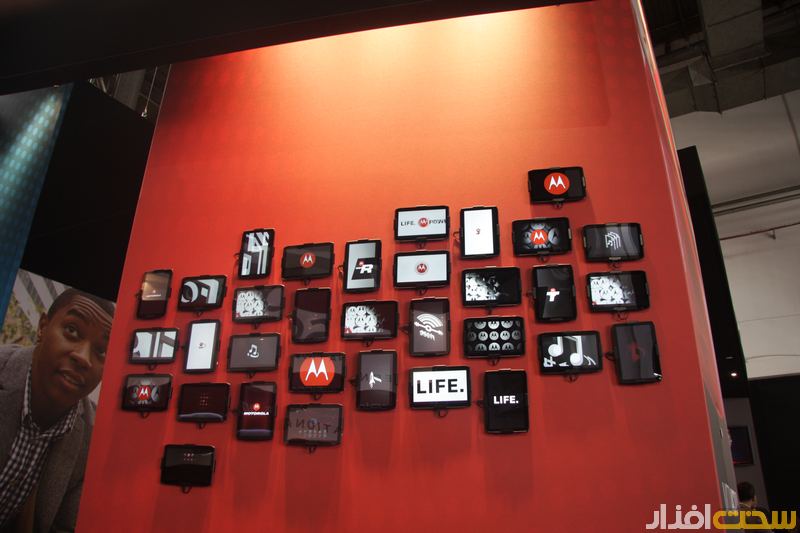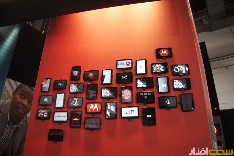 در وسط غرفه با یک دیوار از تبلت های موتورلا رو به رو می شدید که در حال نمایش تصویر بودند.