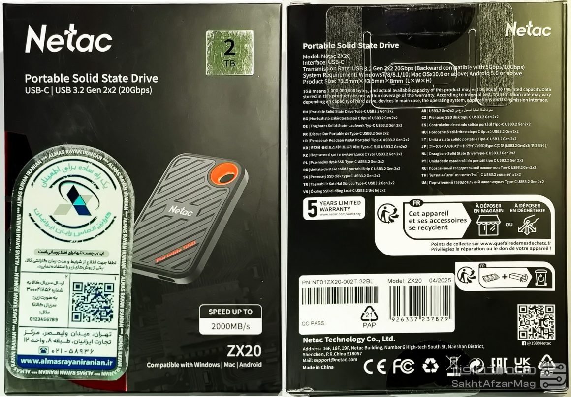 حافظه اساسدی ZX20 نتک در ظرفیت 2 ترابایتی در ایران توسط الماس رایان ایرانیان عرضه گردیده است.