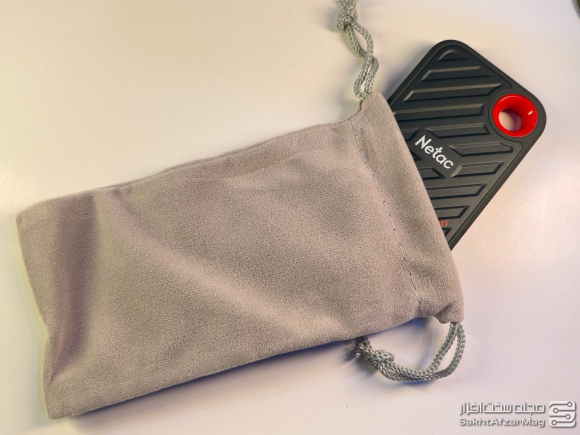 همچنین یک کیف مخملی برای محافظت از این حافظه در نظر گرفته شده است. این کیف محافظ مناسب جابهجایی و حملونقل این حافظه به همراه کابلهایش است.