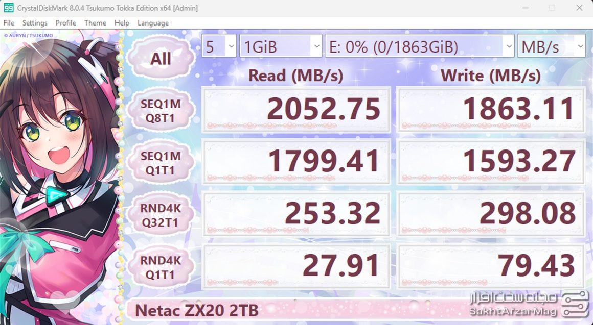 سرعت بسیار مناسب بالای 2000MB/s برای خواندن و بیش از 1700MB/s برای نوشتن، بسیار عالی است، فقط باید توجه داشته باشید که درگاهی که به آن متصل میکنید، از نوع USB 20Gbps و یا USB 3.2 Gen.2 x2 باشد.