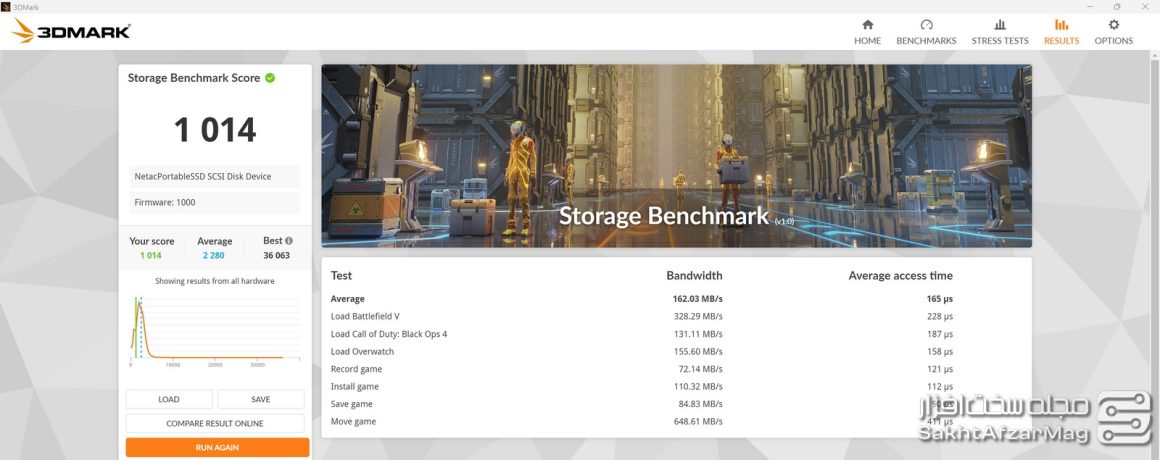 در بنچمارک 3D Mark Storage نیز امتیاز خوب 1014 برای این حافظه ثبت شد.