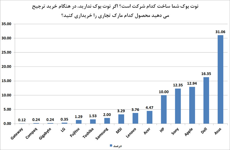 1- نوتبوک شما ساخت کدام شرکت است؟ اگر نوتبوک ندارید، در هنگام خرید ترجیح می دادید محصول کدام مارکتجاري را خریداری کنید؟