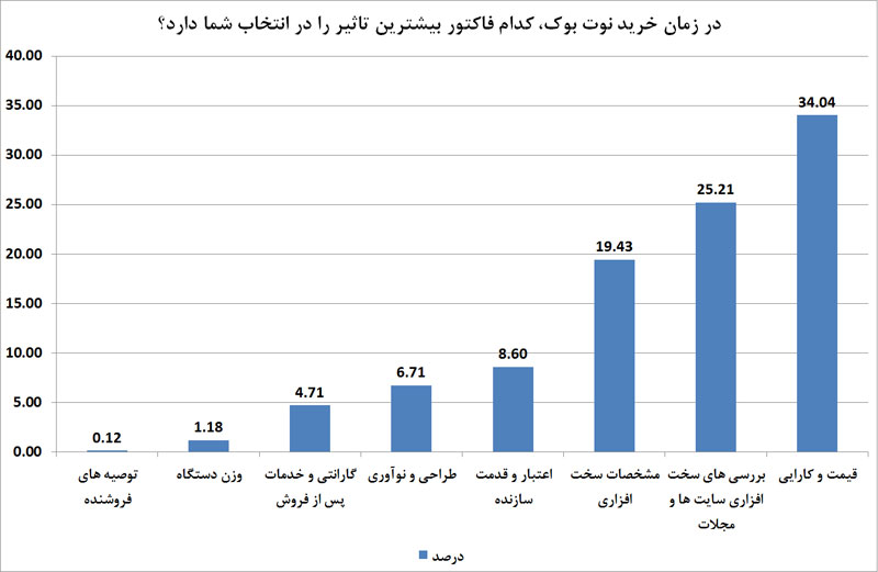 2- در زمان خرید نوتبوک کدام فاکتور بیشترین تاثیر را در انتخاب شما دارد؟
