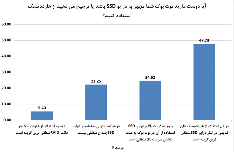 9- آیا دوست دارید که نوت بوک شما مجهز به درایو SSD باشد یا ترجیح می دهید از هارددیسک استفاده کنید؟