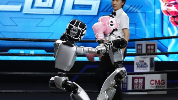 در رویدادی که در آن سیلیکون و عضله در مقابل یکدیگر قرار گرفتند، چین میزبان اولین تورنمنت کیک بوکسینگ ربات های انساننما در جهان بود. مسابقه جهانی رباتها (سری مبارزات...