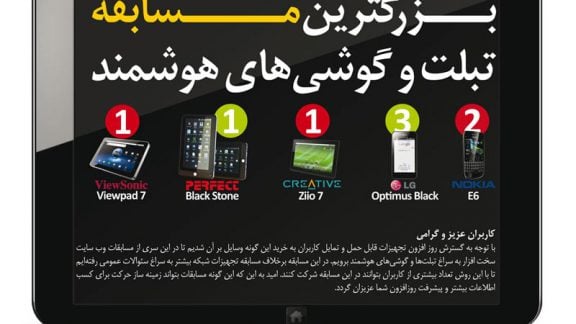 سلام به همه دوستان و عزيزان بالاخره مسابقه تبلت و گوشيهاي هوشمند هم شروع شد. پس حسابي عزم خود را جزم کنيد تا يک رکورد جالب در...