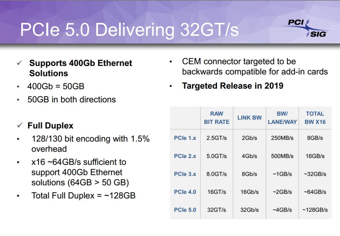 نسل اول استاندارد PCIe در سال 2003 معرفی شد و در آن زمان پهنای باند حداکثری 8GBps را (در هر دو جهت به صورت همزمان) در اختیار قرار می داد. در نسل دوم که دو سال بعد معرفی شد این عدد به 16GBps ارتقا یافت و پس از آنها پنج سال زمان نیاز بود تا سرانجام در سال 2010 و با معرفی PCIe 3.0 این عدد به 32GBps افزایش یابد. اما توسعه استاندارد نسل چهارم حتی بیش از این زمان برای معرفی نسل سوم به درازا انجامید و در ماه های پایانی 2017 شاهد نهایی شدن آن هستیم.