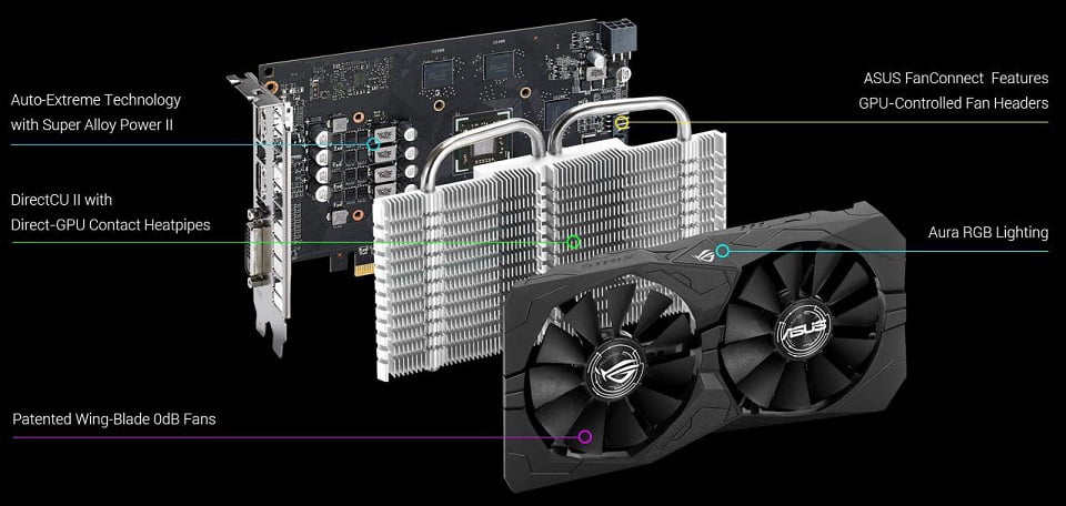 ایسوس با بازطراحی کامل مدار تغذیه و PCB کارت گرافیک RX 480، با کمک پیاده سازی ایده آل قطعات در مدار تغذیه و به کارگیری بهترین ها در آن، فرکانس هسته را در حالت اورکلاک شده به 1256MHz رسانده است تا در بازی و تست های گوناگون، برتری محسوسی نسبت به مدل مرجع داشته باشد.