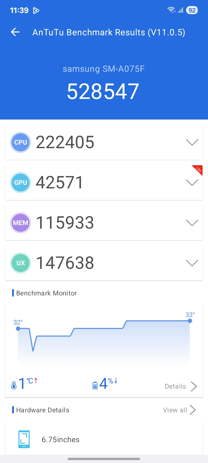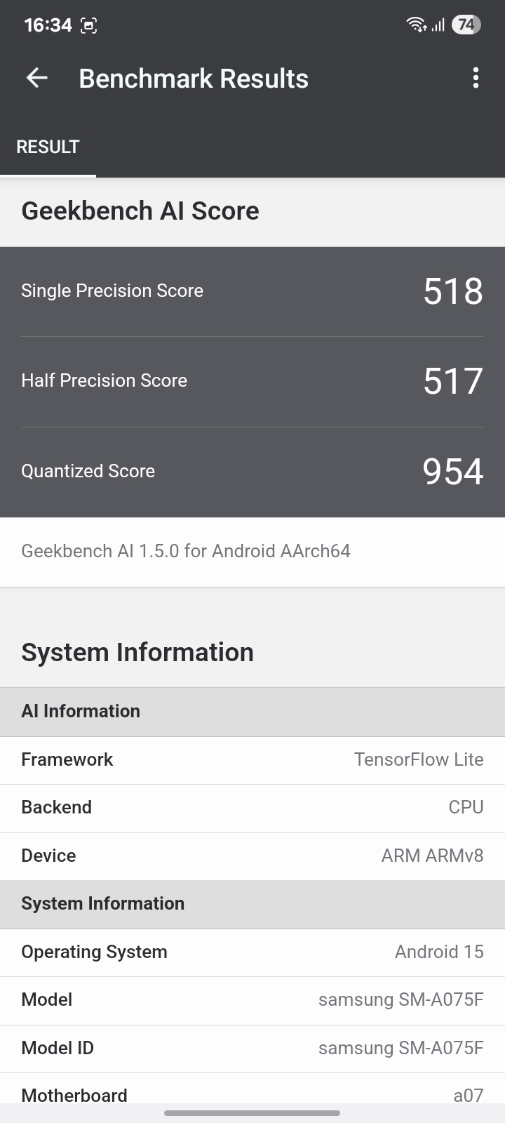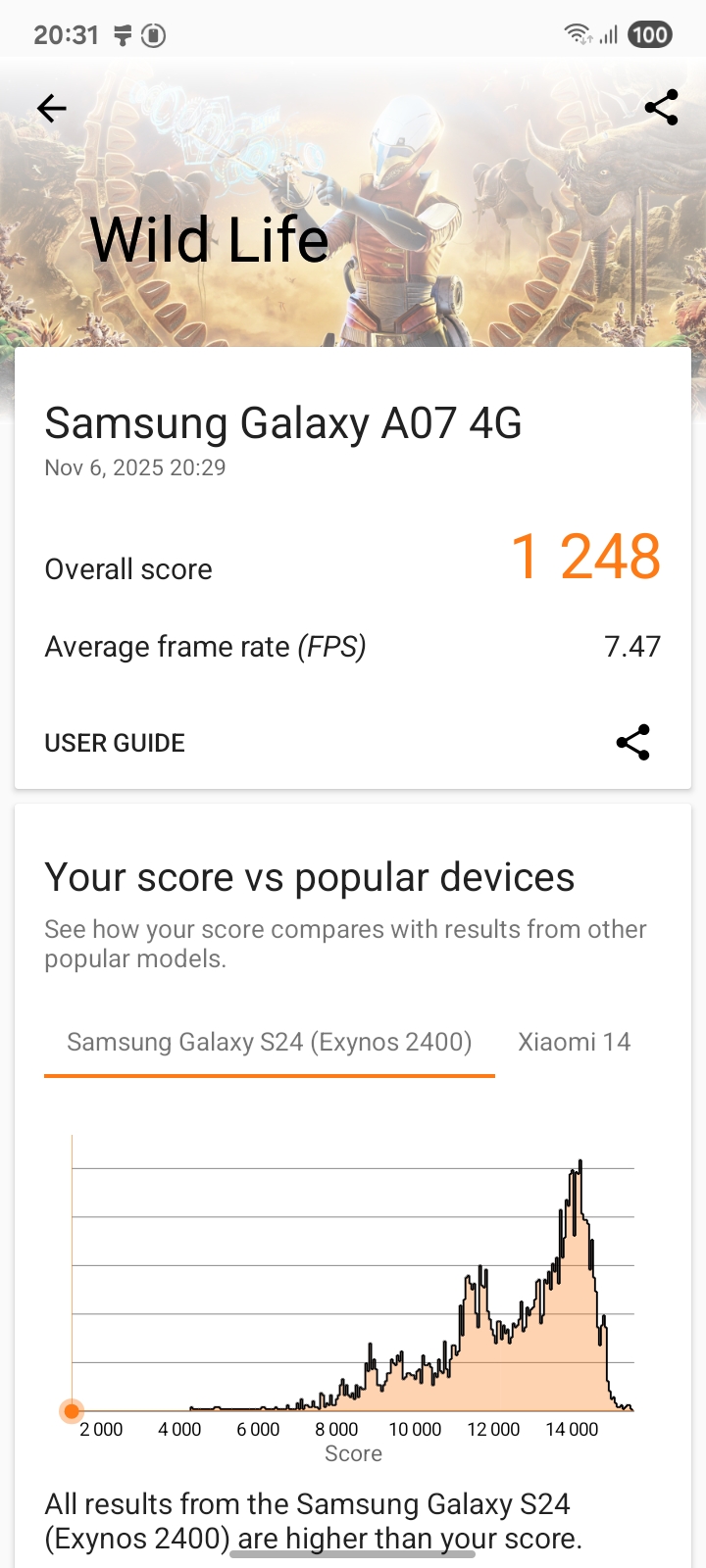 نتایج تست های بنچمارک گوشی گلکسی ای ۰۷ سامسونگ